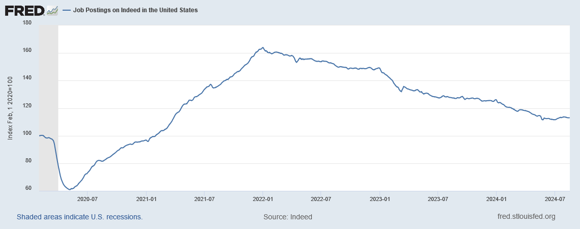 As expected, the job market has cooled from the heady days of the pandemic recovery, with job openings at their lowest levels since April 2021. Yet July 2024 saw a small rebound the likes of which haven’t been seen in over two years. Might this give us some optimism?