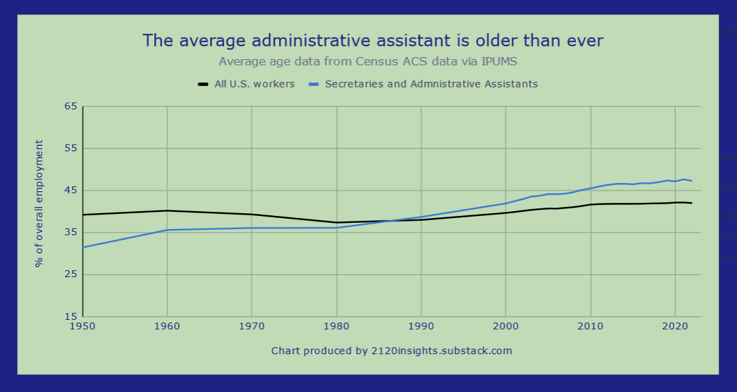 Secretaries and Administrative Assistants are now among the top 20 “oldest” occupations.